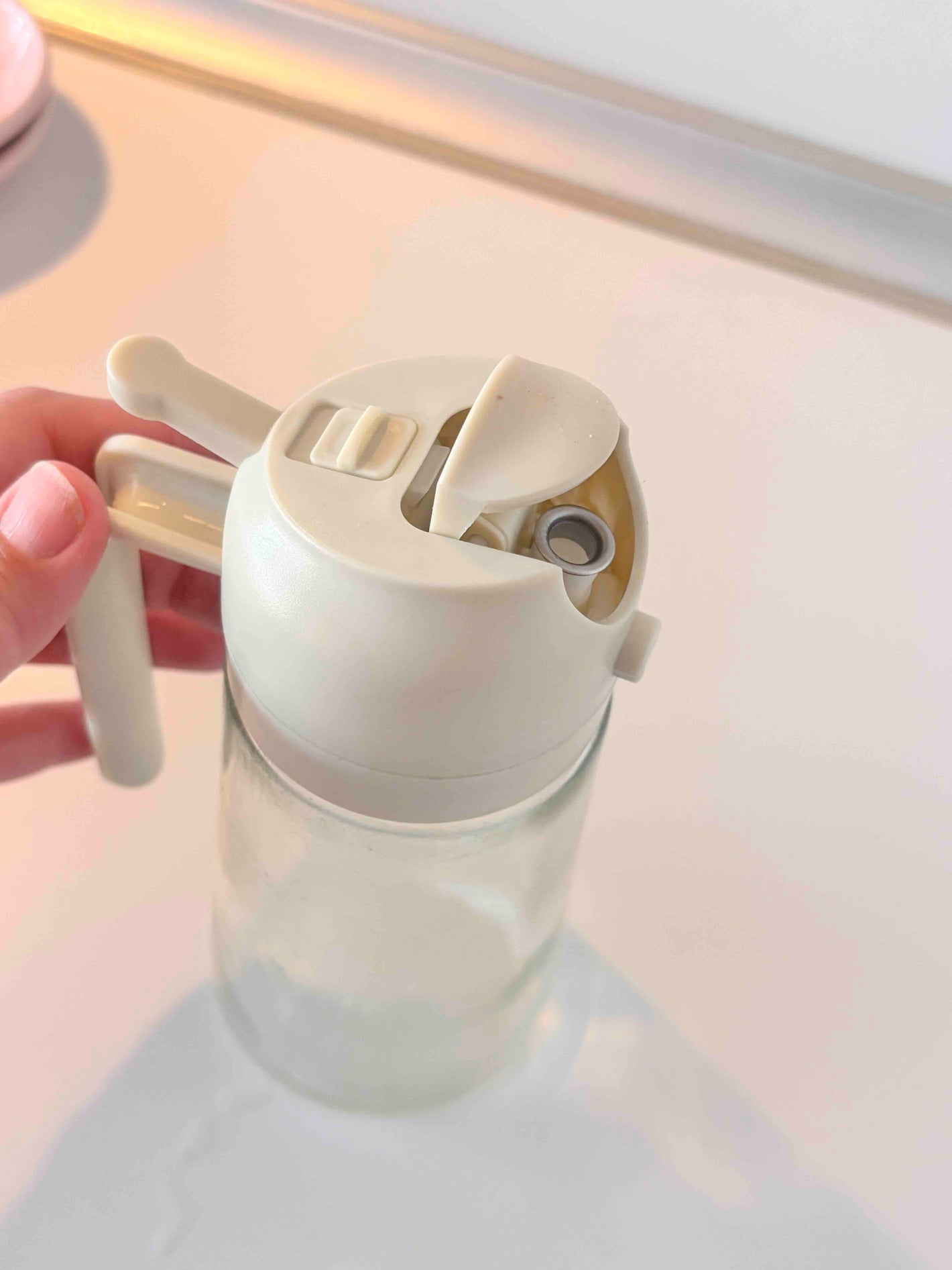 Spreyli cam yağdanlık, yağı ince bir tabaka halinde dağıtarak her yemekte ideal miktarı kullanmanı sağlar.